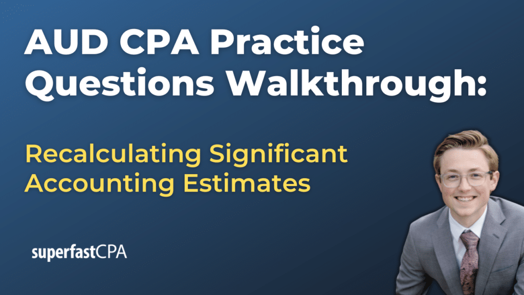 In this video, we walk through 5 AUD practice questions teaching about recalculating significant accounting estimates. These questions are from AUD content area 3 on the AICPA CPA exam blueprints: Performing Further Procedures and Obtaining Evidence