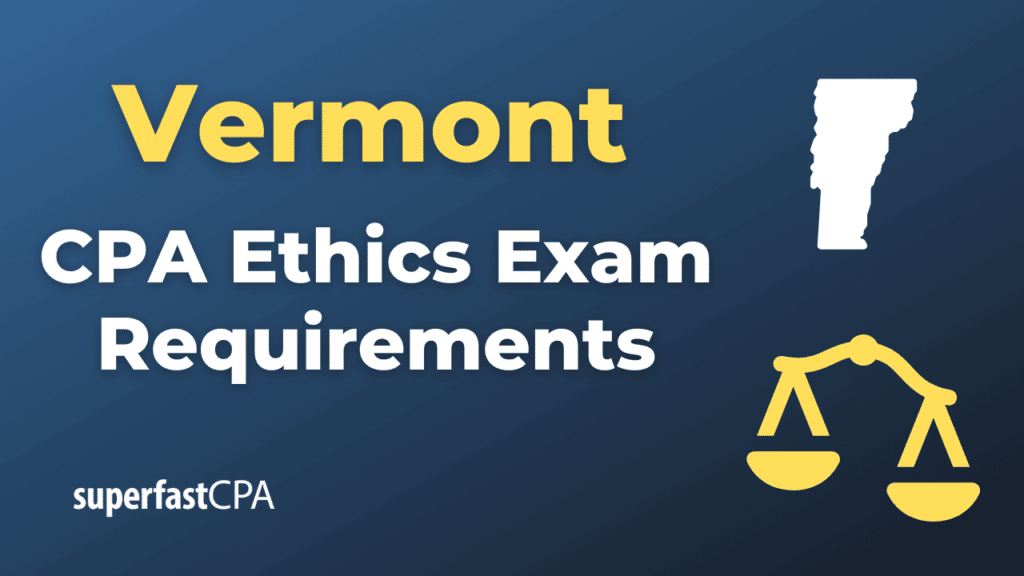 To meet the Vermont CPA ethics exam requirements and become a CPA, a candidate must complete the course and exam from the American Institute of Certified Public Accountants (AICPA) titled Professional Ethics: The AICPA’s Comprehensive Course (For Licensure). The exam is an open book examination and the passing score is 90%.